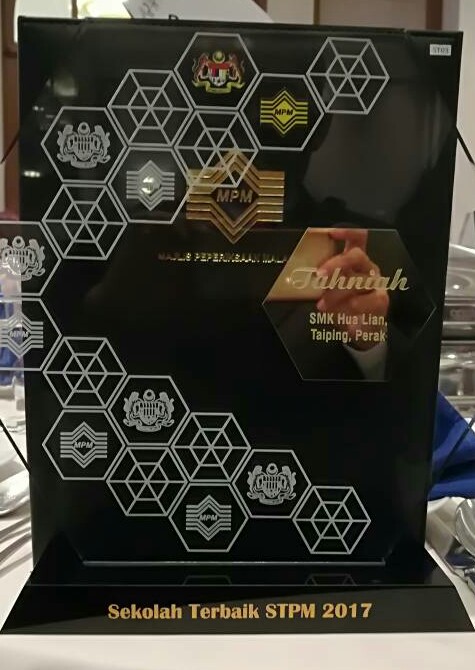 SMJK Hua Lian Taiping mendapat Anugerah Sekolah Terbaik STPM Tahun 2017. Sekolah kami telah mendapat anugerah tersebut buat kali ketiga. PNGK adalah 3.42 dan seramai enam pelajar cemerlang mencapai gred purata 4.00. Mereka adalah Loh Kar Hang, Ong Suey Li, Tan Chin Liang, Wong Khai Yang, Ng Shi Ying dan Ng Yan Shan.